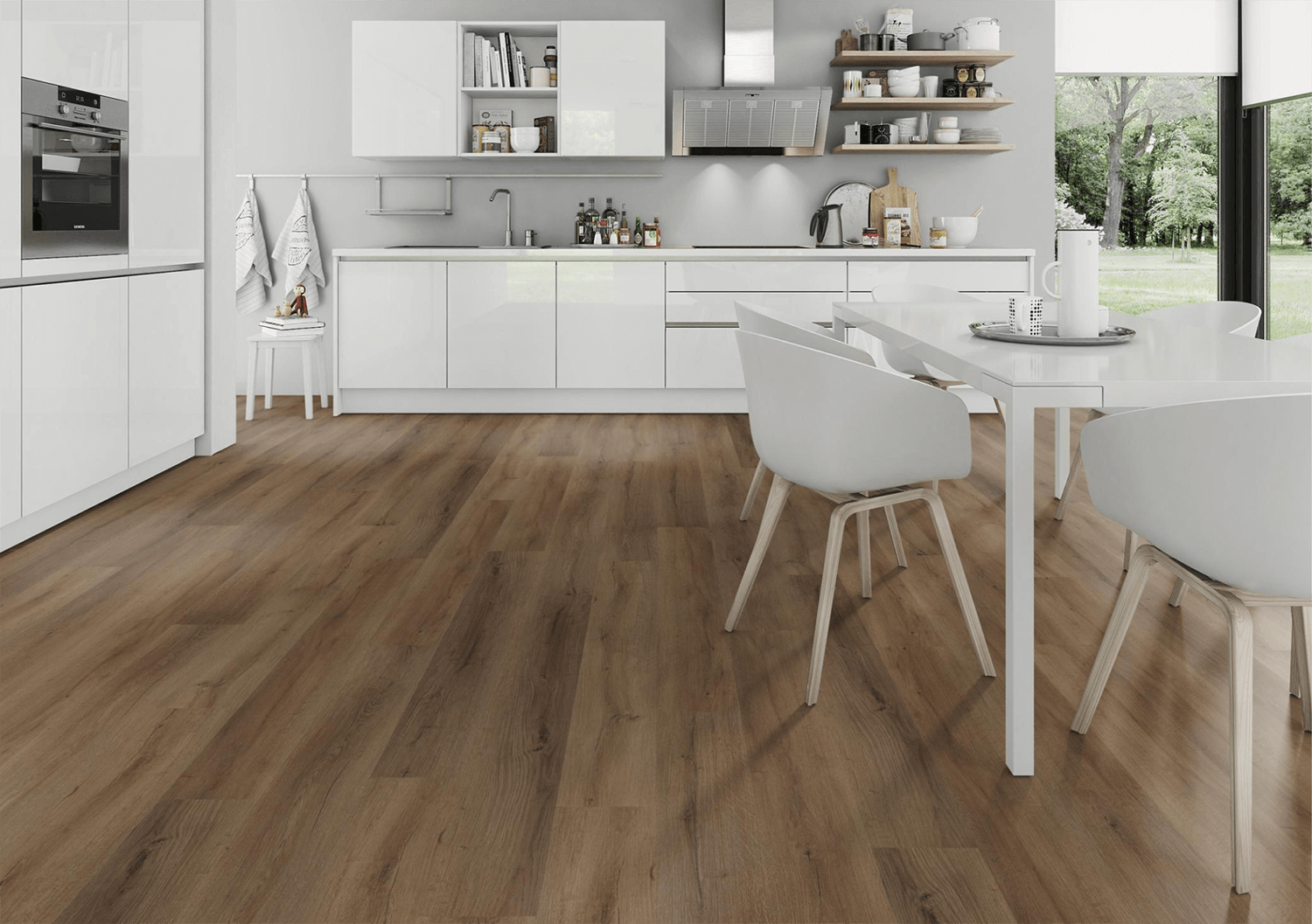 Engineered luxury vinyl that combines limestone and stabilizers to create an extremely durable “Core” as well as adding stability, dent resistance and structure to vinyl plank flooring. With a wear rating of 0.55, this product is suitable for both commercial and domestic settings. Comes complete with attached 1mm underlayment to help with sound reduction and add comfort to the floor. It is 100% waterproof and suitable for installation in kitchens, bathrooms and utility rooms.